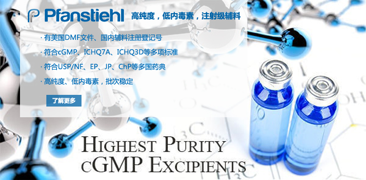 “熱烈祝賀Pfanstiehl的注射級甘氨酸Glycine(G-140)喜獲CDE登記號F20250000403, 這是Pfanstiehl產品獲得的第18個CDE登記號!”甘氨酸在醫藥輔料制劑中應用廣泛,, 可作為緩沖劑,增溶劑,穩定劑等,具有諸多優勢。Pfanstiehl秉承一貫高品質理念,為滿足全球生物制藥行業對于高品質甘氨酸的需求,隆重推出的注射級甘氨酸Glycine (G-140), 具有超高純度,超低內毒素,超低金屬殘留的特點,單獨檢測29種金屬離子,并且新增DNA,RNA,DNA酶,RNA酶和脂肪酶,亞硝酸鹽等多項質量指標的檢測,符合多國藥典規定(USP, EP, BP, JPE, ChP),可用于生物治療性藥物和疫苗的生產。產品信息:· 產品名稱:Glycine, High Purity, Low Endotoxin, Low Metals, USP, EP, BP, JPE, ChP (G-140)· 中文名稱:甘氨酸· 分子式:C2H5NO2· 分子量:75.07 g / mol· CAS號:56-40-6· 產品貨號:G-140產品特點: · 超高純度,超低內毒素,超低微生物含量,超低金屬雜質殘留· 質量指標新增DNA,RNA,DNA酶,RNA酶,脂肪酶和亞硝酸鹽檢測· 符合多國藥典:USP, EP, BP, JPE, ChP· 符合ICH Q3D標準· 符合GMP標準· 已獲DMF和CDE登記號 產品應用:· 緩沖劑· 穩定劑· 增溶劑如果您對Pfanstiehl注射級別Glycine G-140感興趣,歡迎聯系Pfanstiehl 中國區代理商北京西美杰科技有限公司獲得如下詳細的產品概況說明文件和測試樣品。Pfanstiehl Inc.最新產品系列如下,歡迎聯系北京西美杰科技有限公司獲取100g裝免費樣品。北京西美杰科技有限公司為Pfanstiehl中國代理,為客戶提供完善的技術支持與售后服務。歡迎撥打西美杰客服電話400-050-4006或者登陸網站www_xmjsci_com.294388.com了解更多信息。 更多>